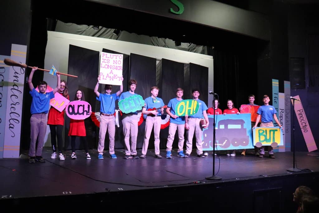 The show’s first song “Nouns” with soloist Olivia Goetz and Lainey Mardula started the show ready to make learning fun. The audience was wowed by the soloists in the different numbers. Emily Aldridge and Elizabeth Passow sang a beautiful version of “Inter-planet Janet,” where Megan Bender played Janet, flying around the stage visiting each planet in the solar system.