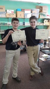 St. Mary eighth-graders Evan Filson and Ethan O’Keefe won the Future CEO Competition and will move on to St. Ignatius for the next level of competition. Their “company” made piBox, which is a cost effective way to access video games. They 3D printed a housing and used a raspberry pi board to build a device that comes with a controller and an HDMI cord for $75. All one needs is a monitor to be set for gaming.