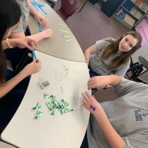 The junior high leaders decided the best way to help was to collect money, but they wanted to show support as well. Ribbons were the solution and the seventh grade was ready to help.