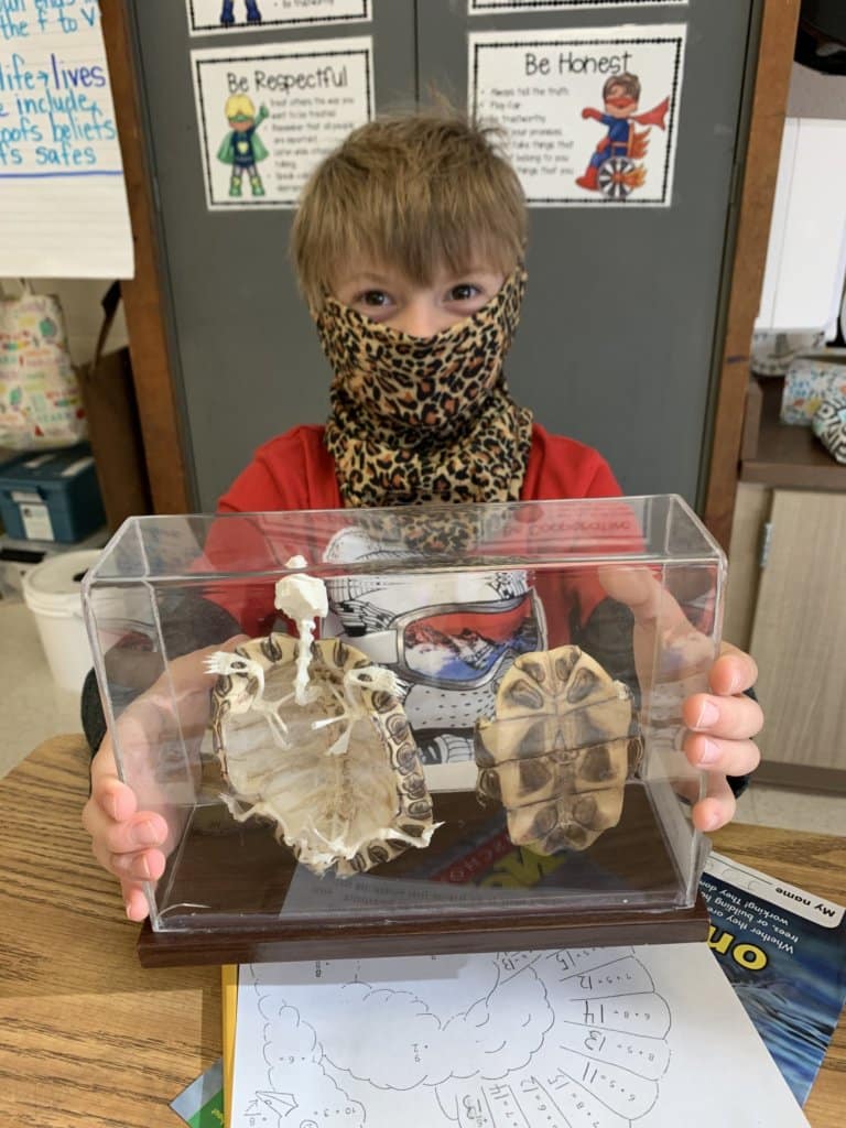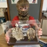 Joey Cardile, a second-grader at Westwood Elementary School, holds a display on loan to his science class from the Cleveland Museum of Natural History. [Photo credit: Jim Kish – WGLSD]