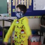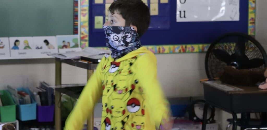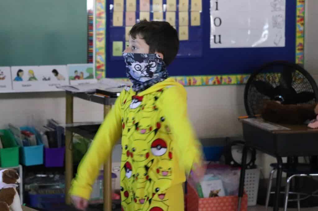 Students at Westwood Elementary School participate in physical education classes in their regular classrooms this year. Mrs. Nicolosi brings her teaching talents to physical education with the students each day. Students adhere to the social distancing and mask protocols as they get plenty of movement in the new format. Each child follows the teacher’s instruction while interactive songs and videos are displayed on the SmartBoard.