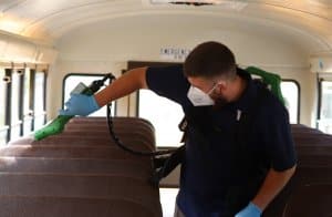 Throughout the school day, building custodians treat lockers, desks, door handles and other high traffic areas using the machines. The buses and other transportation vehicles are treated between the secondary and elementary runs.