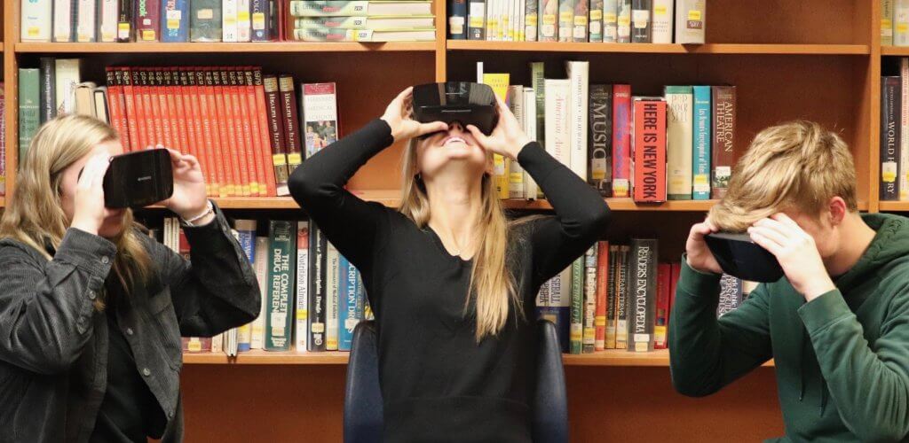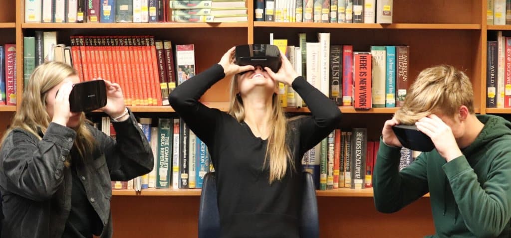 West Geauga High School received virtual reality goggles that were purchased through a grant from the West Geauga Educational Foundation. The virtual reality goggles cover the eyes and immerse the students in a variety of 3-D experiences. Students can take virtual field trips to locations right from the classroom. They have opportunities to visit places like the Great Pyramids, the Sistine Chapel and the Eiffel Tower, just to name a few. The virtual format opens the door to a wide variety of individual experiences that would be difficult to do in a conventional school setting.