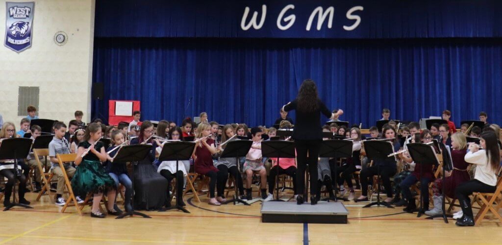 The West Geauga Middle School band performed for a packed house in the middle school gymnasium on Dec. 3. The sixth, seventh and eighth-grade bands performed individually. The concert was complemented by a combined grade level jazz band in which soloists had the opportunity to demonstrate their skills.