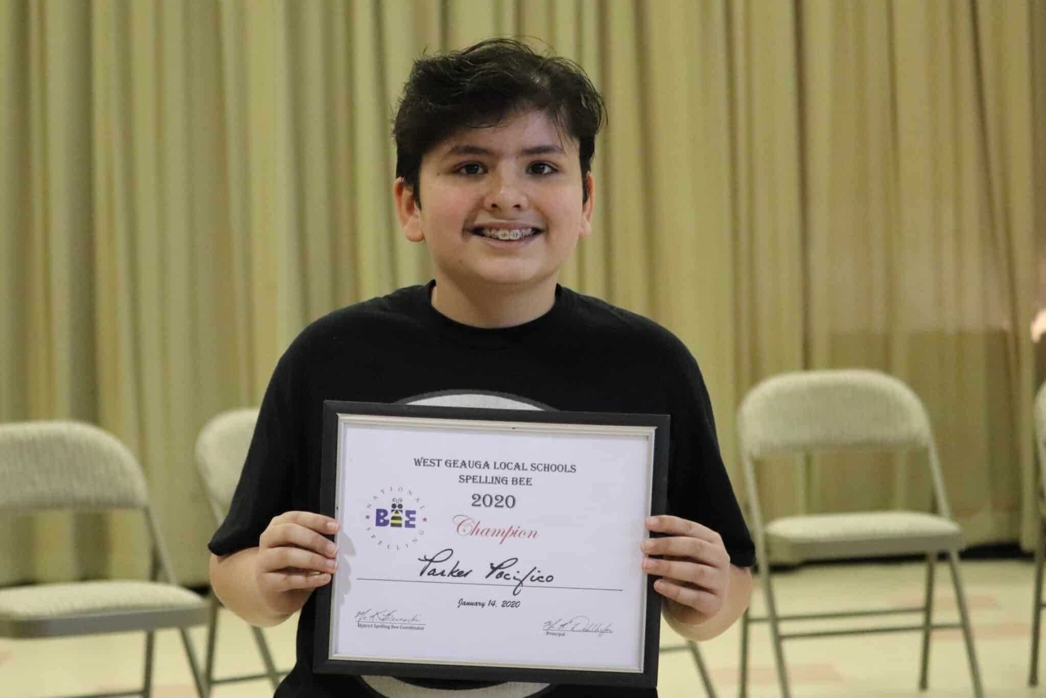 Sixth-grader Parker Pacifico won the bee and will represent West G at the Geauga County Spelling Bee taking place at 7 p.m. Feb. 6 at the Geauga County Educational Service Center.