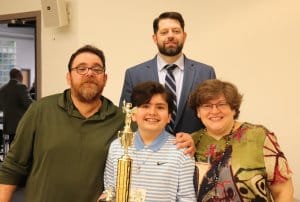 After winning the West Geauga Middle School and district spelling bees, Parker Pacifico went on to spell better than the best of Geauga County. The stage was then set for the Tri-County Bee held at the Educational Service Center of the Western Reserve. Parker competed with the winners of the Lake and Ashtabula county spelling bees. After many rounds of difficult competition, Parker became champion. He will now compete in Scripps National Spelling Bee in Washington, D.C., in May, where he will face some of the best spellers in the country.
