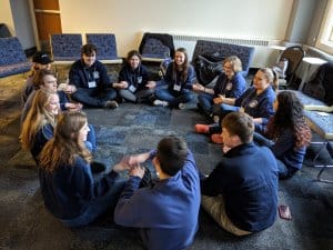 West Geauga High School Academic Decathlon Team finished fourth in the state competition. Special recognition belongs to sophomore Noah Carty who had the highest score for the team. Junior Sofya Goncharenko won a gold medal in interview and had one of the top scores in the state for interview.