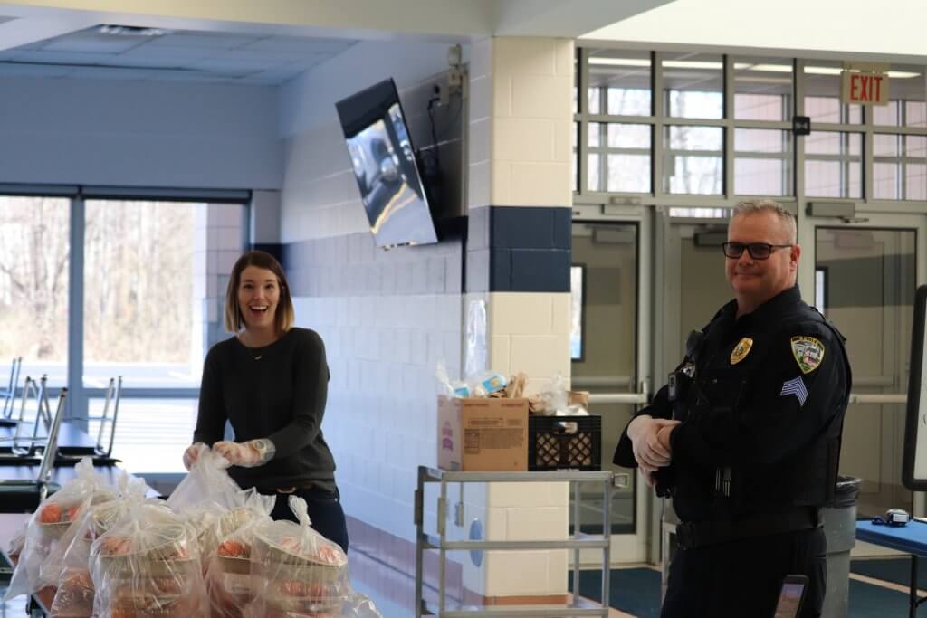 Staff members at West Geauga Local Schools are preparing meals for families during the school shutdown. Families can pick up food items in a drive-thru format at West Geauga Middle School on Mondays and Thursdays. Families wishing to take advantage of this program are encouraged to contact the school their child attends.