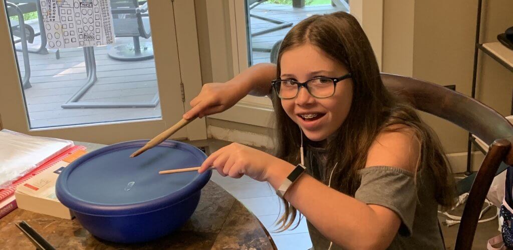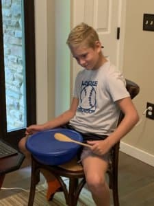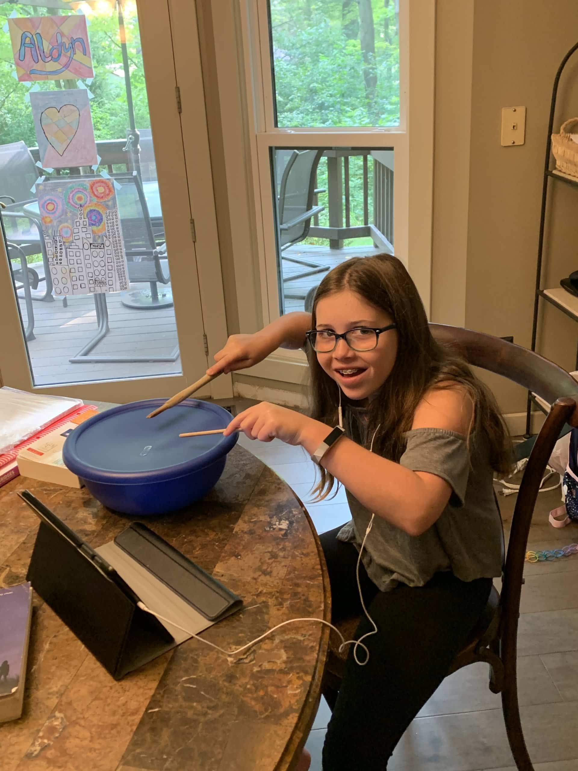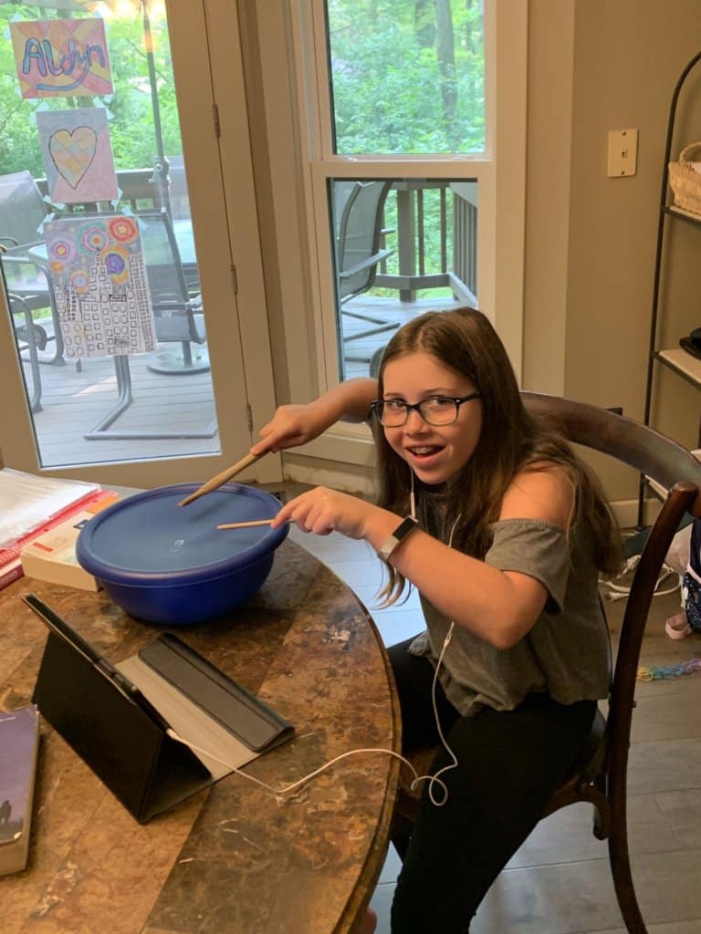 Music teacher Deanna Harrison has embraced online instruction in her music classes at Lindsey Elementary School. Students reviewed rhythmic values of quarter notes and paired eighth notes and quarter rests using household items as a drum.