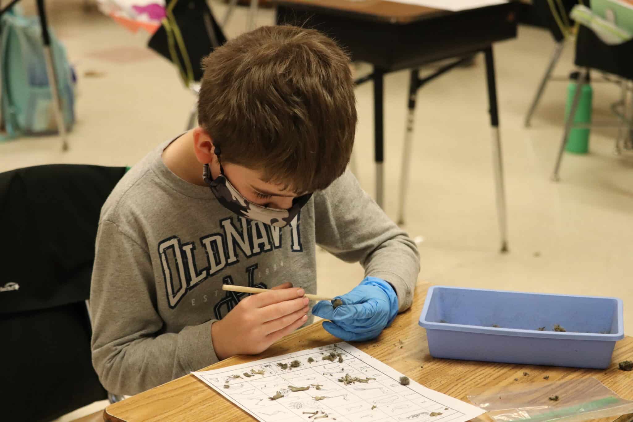 According to Mr. Croff, “This owl pellet activity connects to food chains, predator vs. prey, animal adaptations, and even fossils. An owl pellet is like a mini-archeological site, since the students need to carefully ‘dig’ for the bones of a once-living organism. Students each get their own owl pellet, tray, and dissection tool. I have been doing this activity for many years with the generous help of the Lindsey and Westwood PTOs.”