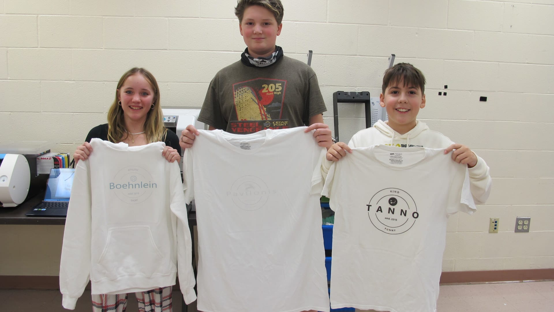 The middle school technology classroom recently received a new garment printer through a generous private donation. The new technology allows students to create a design using the Photoshop program on their Chromebook, and then print it directly onto a shirt or sweatshirt.