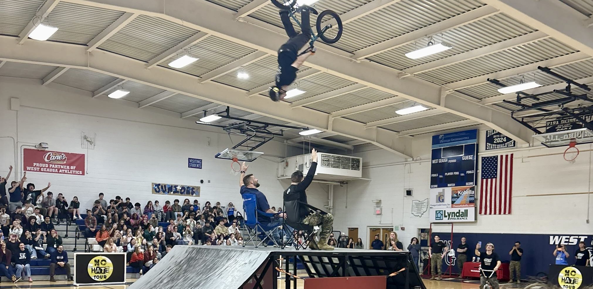 The No Hate Tour rolled into West Geauga High School, bringing with it a team of top BMX professionals and a high-energy, interactive program focused on bullying prevention and awareness. West Geauga was proud to be one of the stops on the national tour, as the performers delivered a powerful message in a creative way that both resonated with and entertained students.