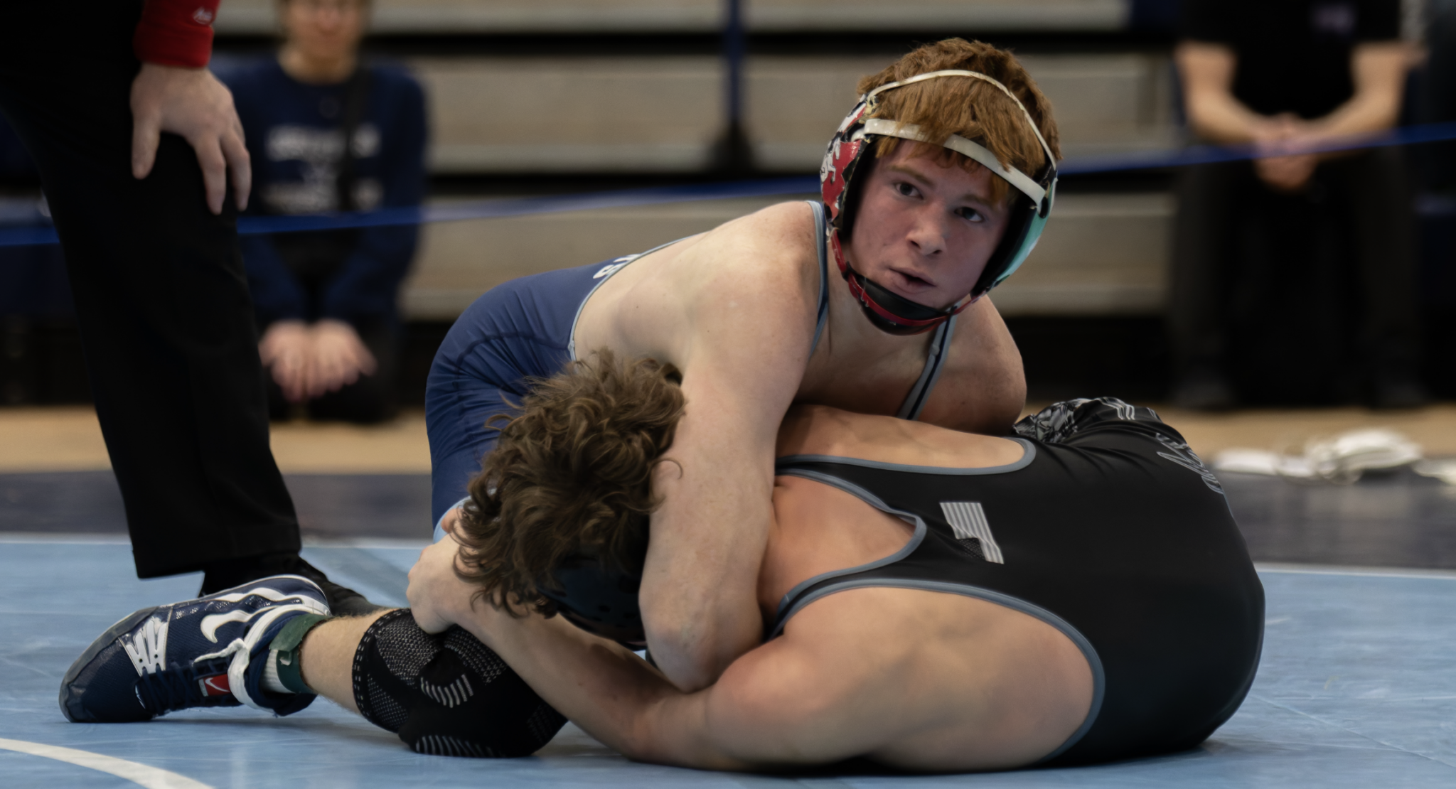 To get to the finals, Triscaro had a first round bye. Then, in the quarterfinals, he quickly pinned his Madison Blue Streaks opponent, sophomore Leonard Lucaj. In fact, Triscaro was dominant in the match, taking his opponent down four times within the first 44 seconds. He then got the pin with just 33 seconds left in the first period.