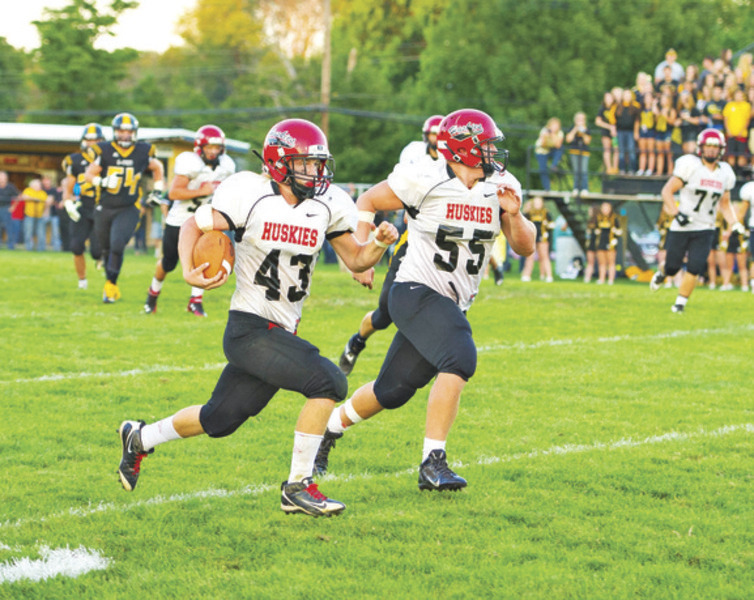 The Huskies ran up 344 yards of total offense, all coming on 47 rushing attempts in their 34-14 victory and giving head coach Eric Cardinal victory number 80 in 15 seasons at Cardinal.